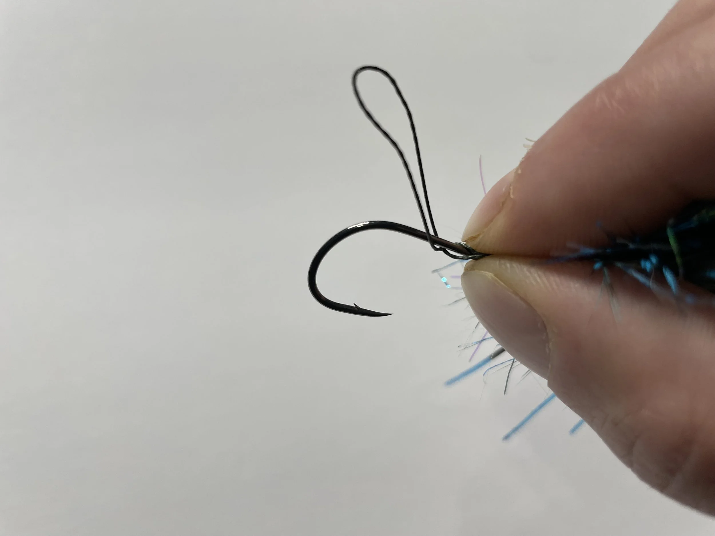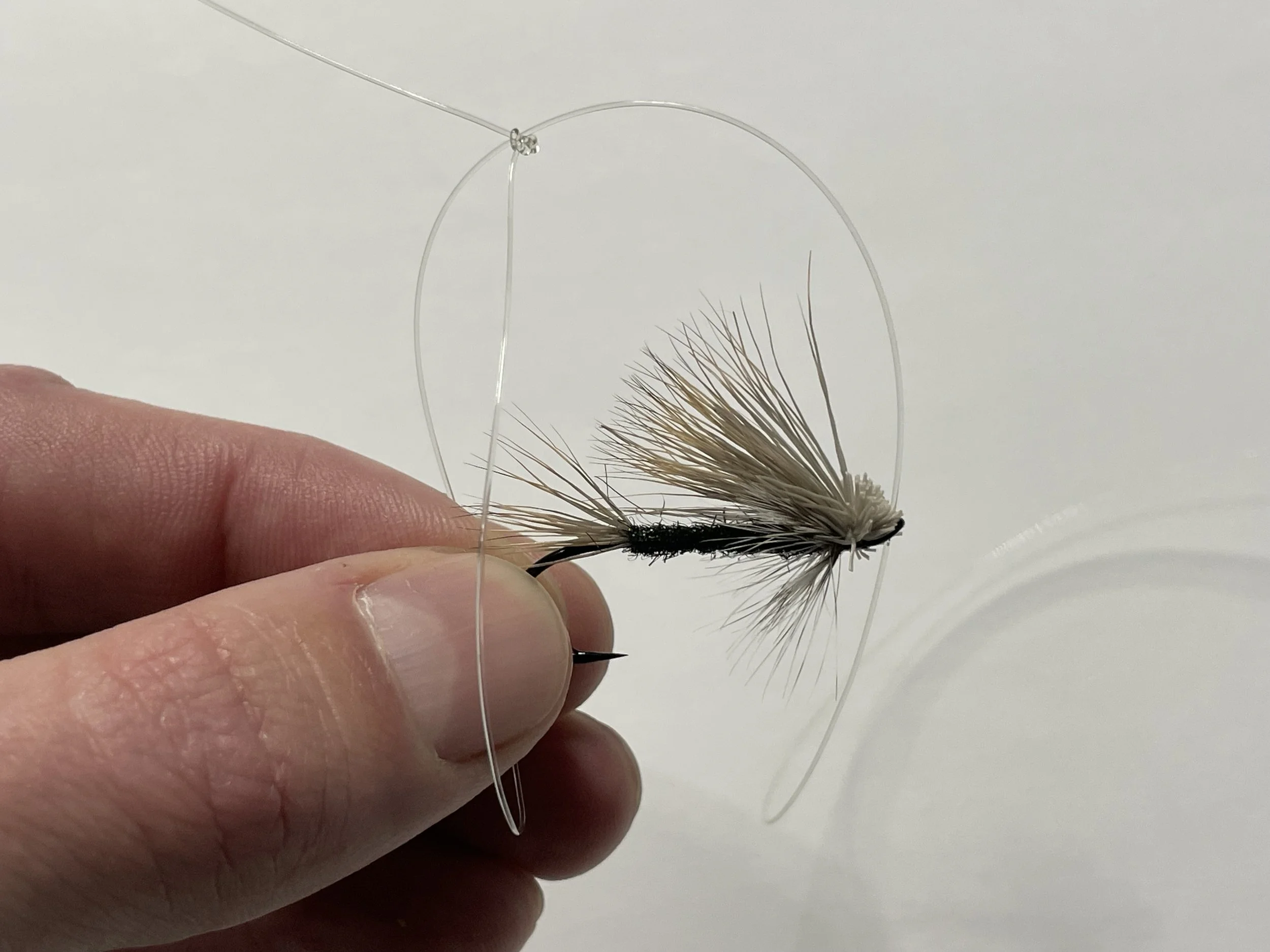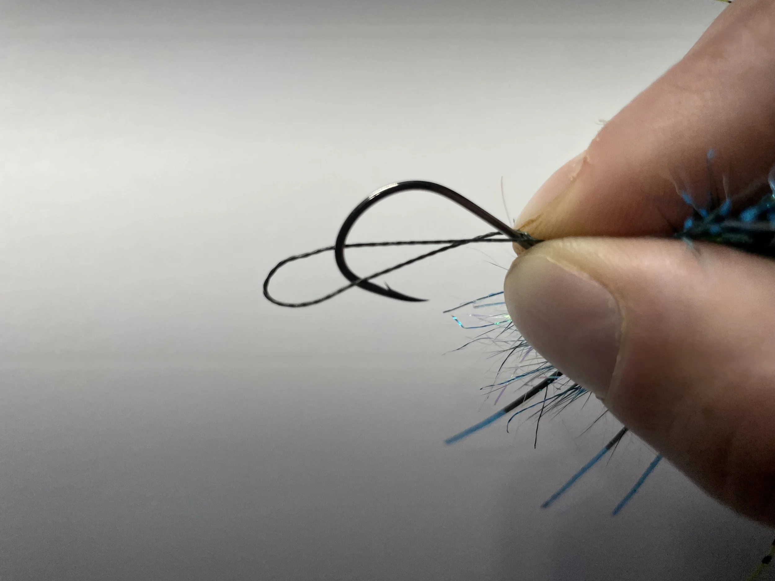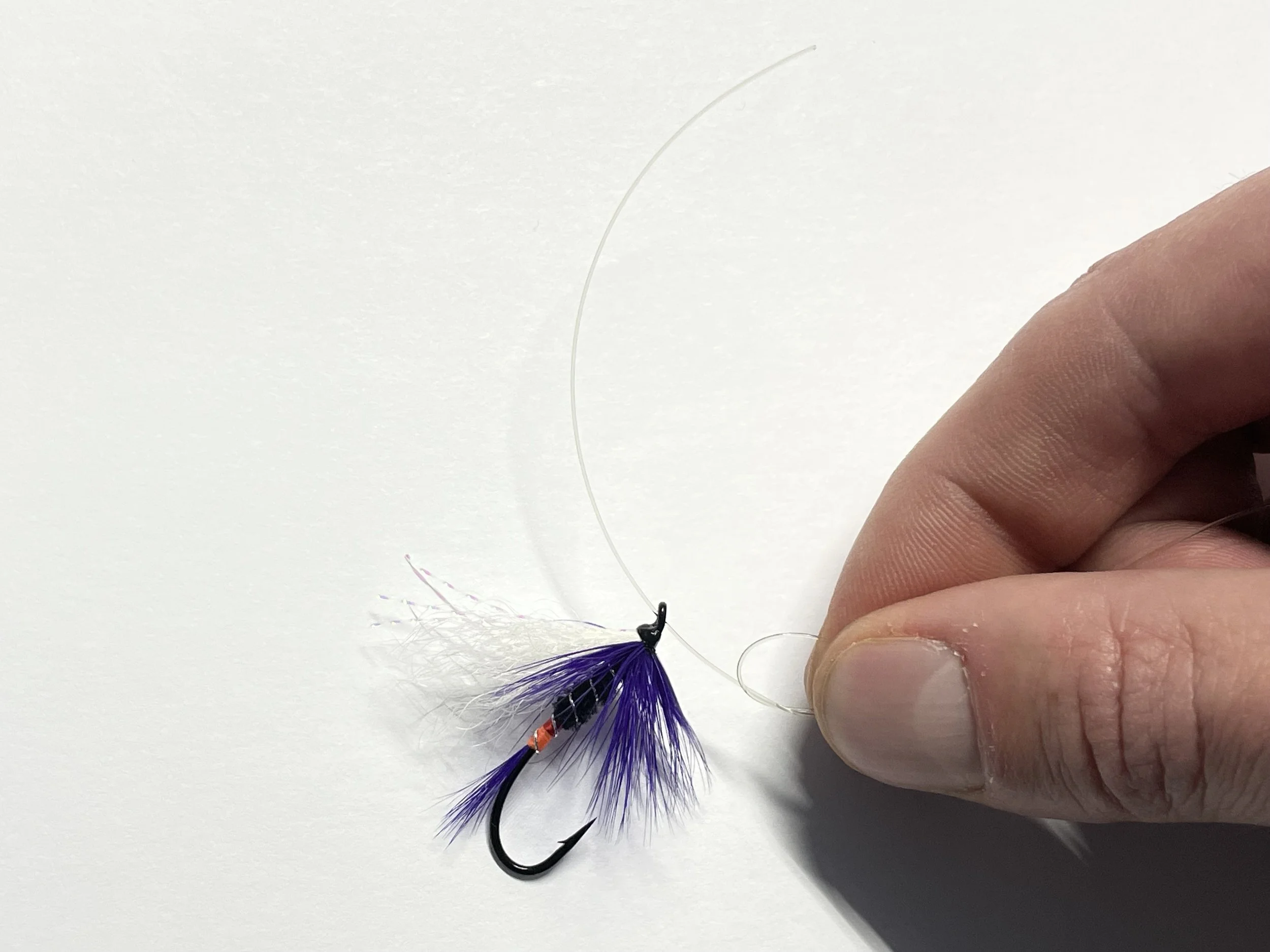 Place the loop over the rear of the fly and position the loop over the eye of the hook.